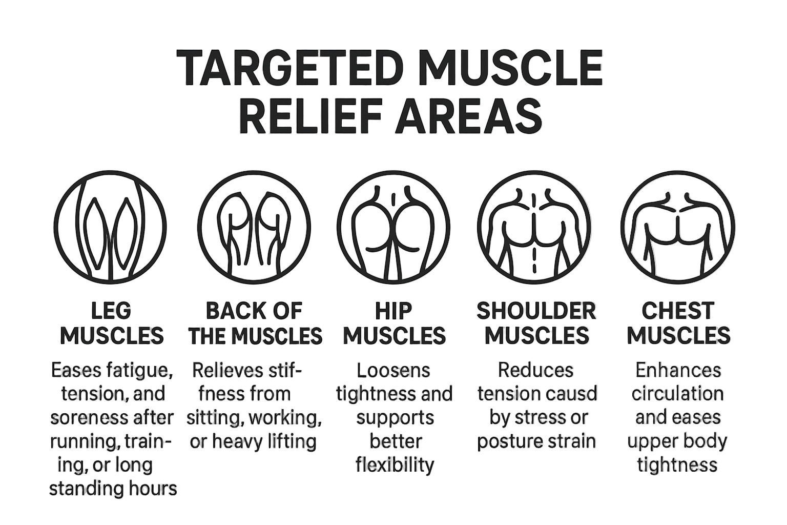 - Instant Relief, Anytime – Say goodbye to sore muscles after workouts, long days, or travel.
